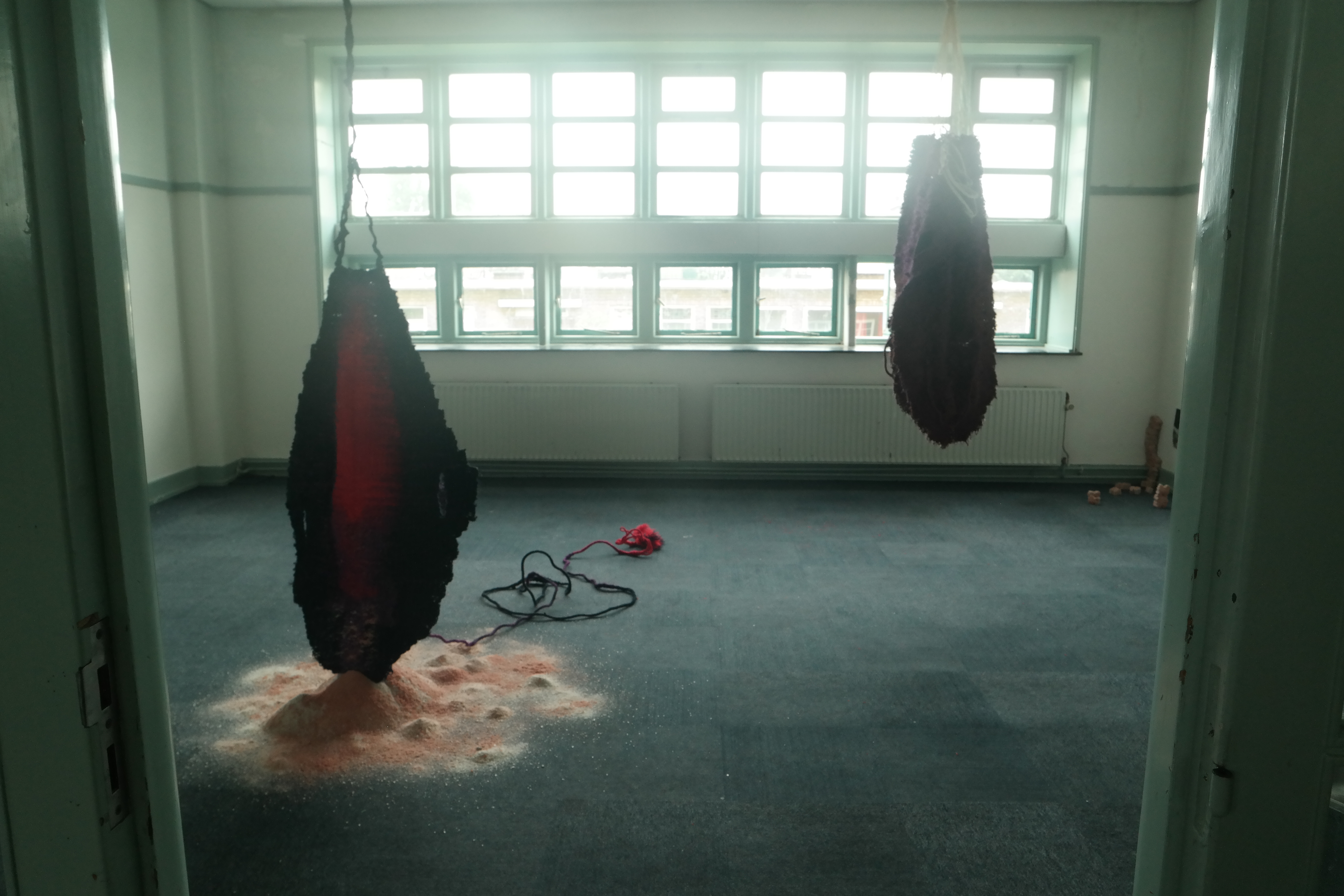 Cocoons at A Foreign Affair Exhibition, Billytown, 2018, sisal rope and organza